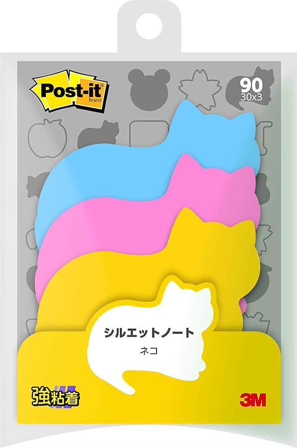 ●仕様:工夫次第で色々使える、型抜きされたシンプルでかわいいデザインのポスト・イット(R)ノートです。しっかり貼れる強粘着タイプ。◆本体サイズ:52×69mmよりカットアウト◆仕様:ネコ◆強粘着タイプ◆入数:30枚×3色◆色:ブルーベル、ローズ、ビビットイエロー