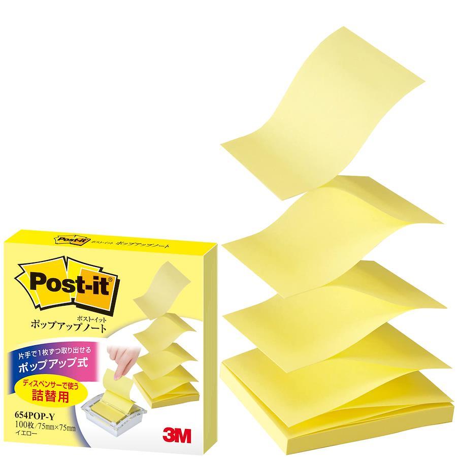 ●ふせんサイズ:75x75mm。 正方形の定番サイズのポストイット付箋です。 詳しい伝言、情報整理などに便利なサイズです。●専用のケース(ディスペンサー)に入れて使うポップアップタイプ。●くり返し貼ったりはがしたりでき、相手をいためません。●ティッシュペーパーのように片手でふせんを上にさっと取り出せるので、忙しい時や電話しながらでもメモをとりやすい製品です。いつも決まった場所に置いておけるから、使いたいときにすぐに使えて、デスクも片付く。 ケース入りなのでふせんが汚れにくく、最後の1枚までキレイに使いきれるのでムダがないのも魅力です。●100枚x1パッド。●色:イエロー●エコマーク取得。●グリーンマーク取得。