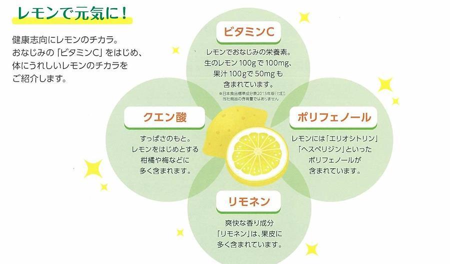 原材料:レモン/酸味料、香料、保存料(パラオキシ安息香酸、安息香酸Na、亜硫酸塩)