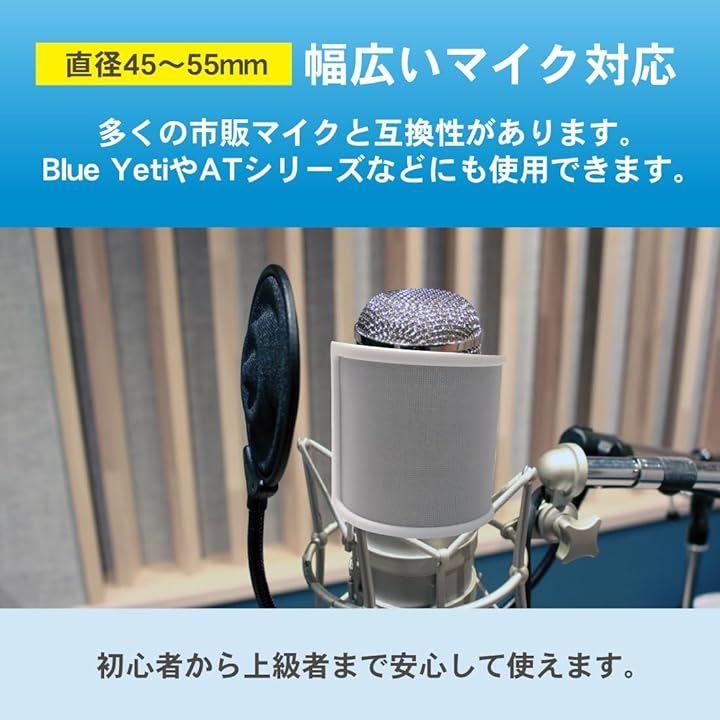 直径45~55mmのマイクに対応し、Blue YetiやATシリーズなど多くの市販マイクで使用できます。