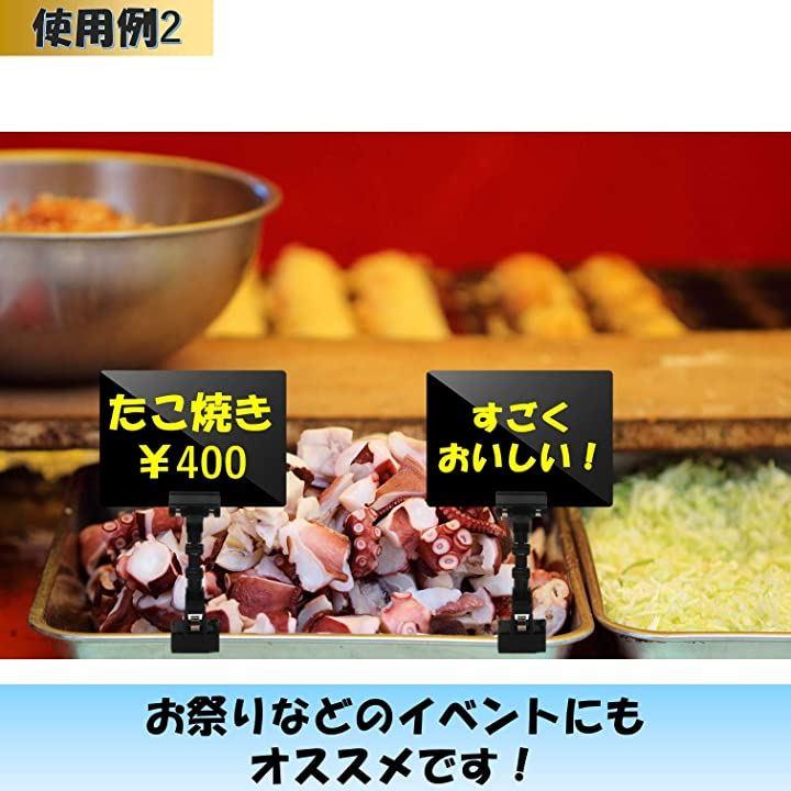 ・店舗だけでなくバザー、フリーマーケット、お祭りなどのイベント会場でも商品の内容説明、詳細、価格表示などに活用できます。