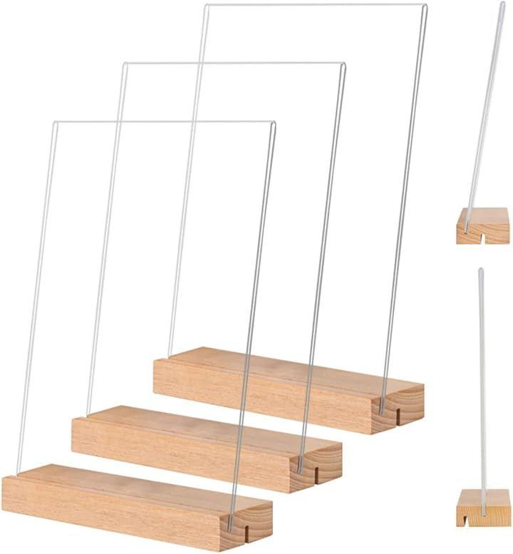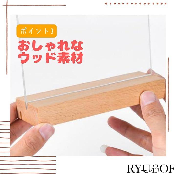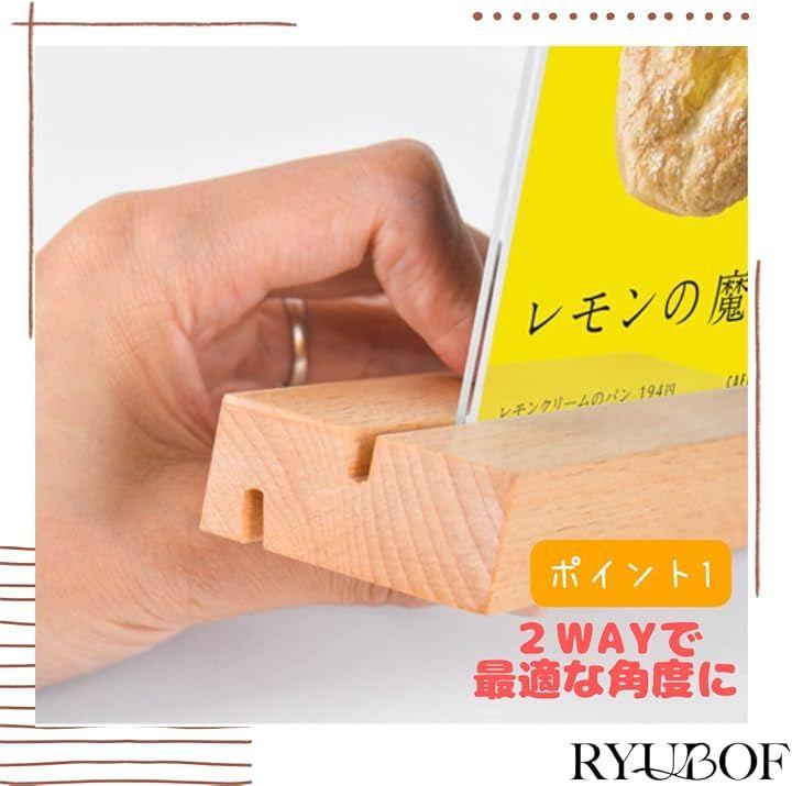 「おしゃれなウッド素材のポップスタンド」厚みのあるウッド土台に透明度の高いアクリル板を組み合わせたデザインのこのスタンドはおしゃれなメニュースタンドやポスタースタンドとして店舗の雰囲気を高めます。