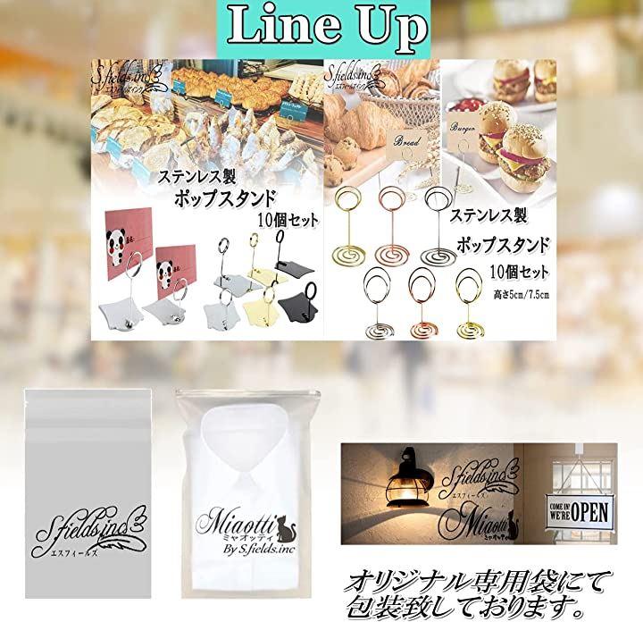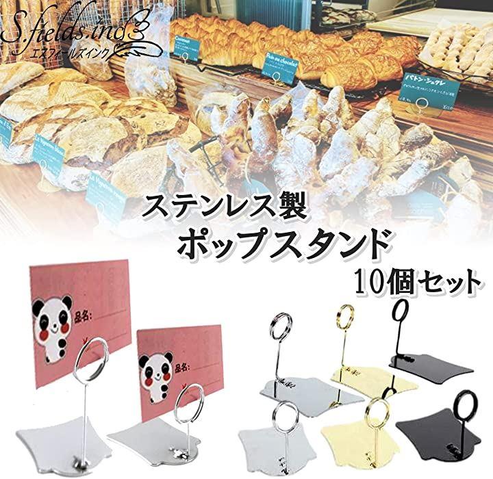 ・パン屋さんやケーキ屋さんなどのショーケースで使われるステンレス製ポップスタンド10個セットです。
