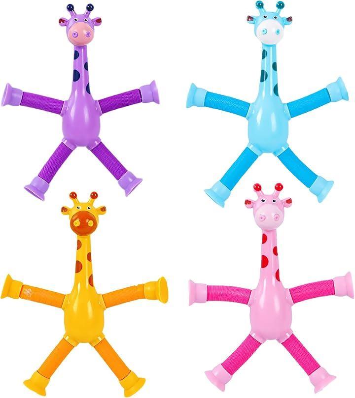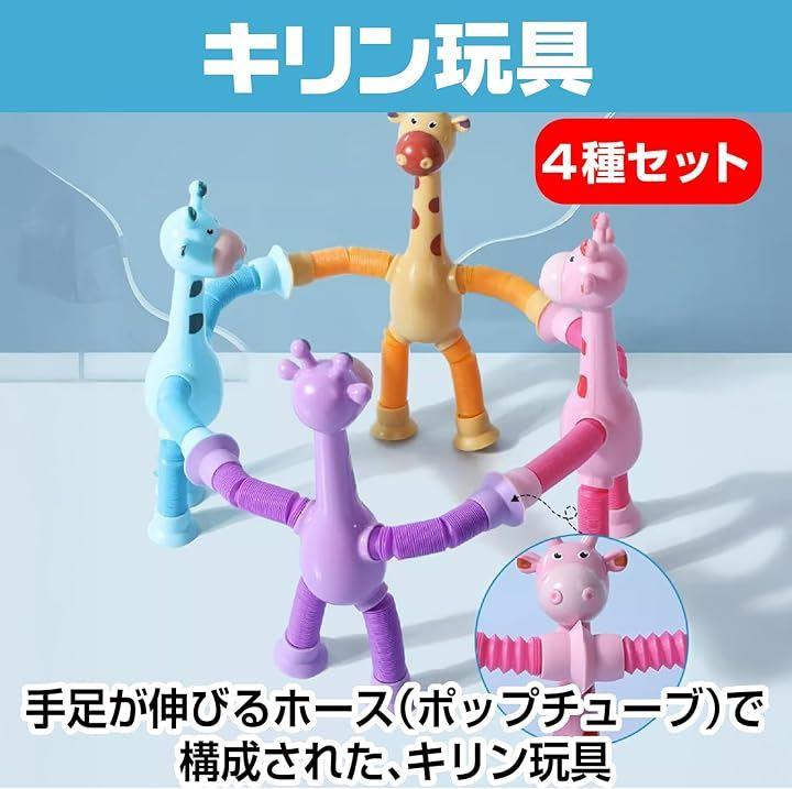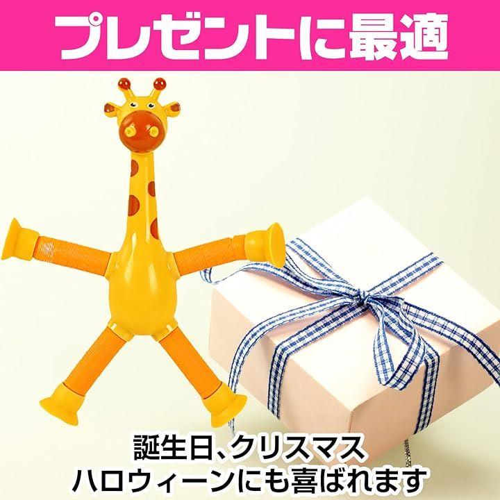 「ポップチューブ キリン」手足が伸縮し、吸盤が付いたおもちゃが、想像力をかき立て、創造的な遊びをサポートします。