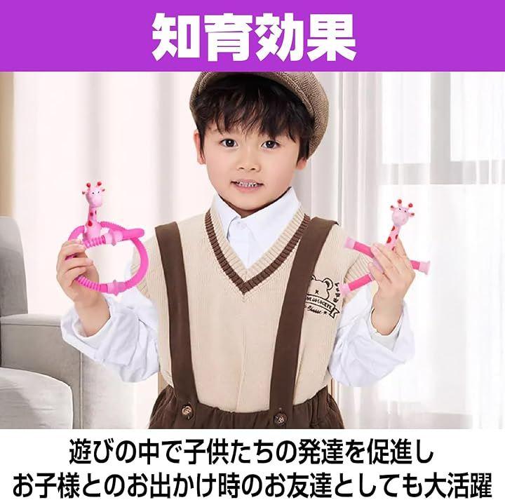 「キリン 玩具」手足が伸びるホース(ポップチューブ)で構成された、キリン玩具がお子様に楽しい体験を提供します。