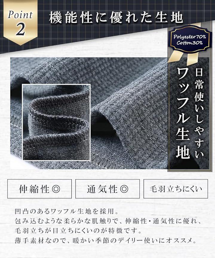 「機能性に優れた日常使いしやすいワッフル生地」伸縮性、通気性マル。