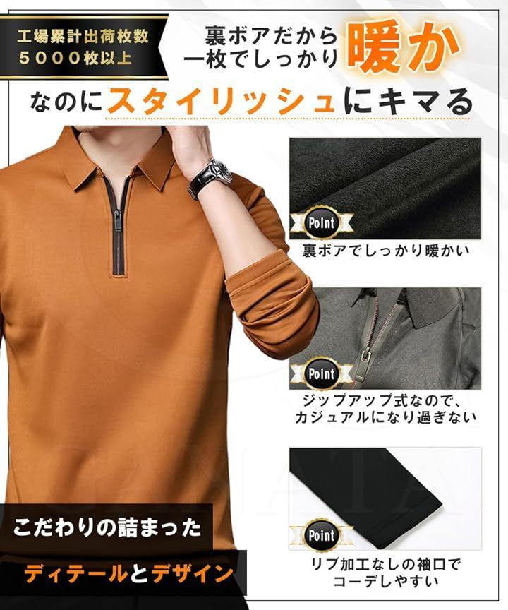 「このポロシャツで解決」裏ボアだから一枚でしっかり暖かなのにスタイリッシュにキマる。