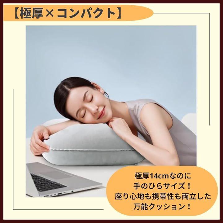「極厚xコンパクト」極厚14.5cmなのに手のひらサイズ。座り心地も携帯性も両立したクッション。