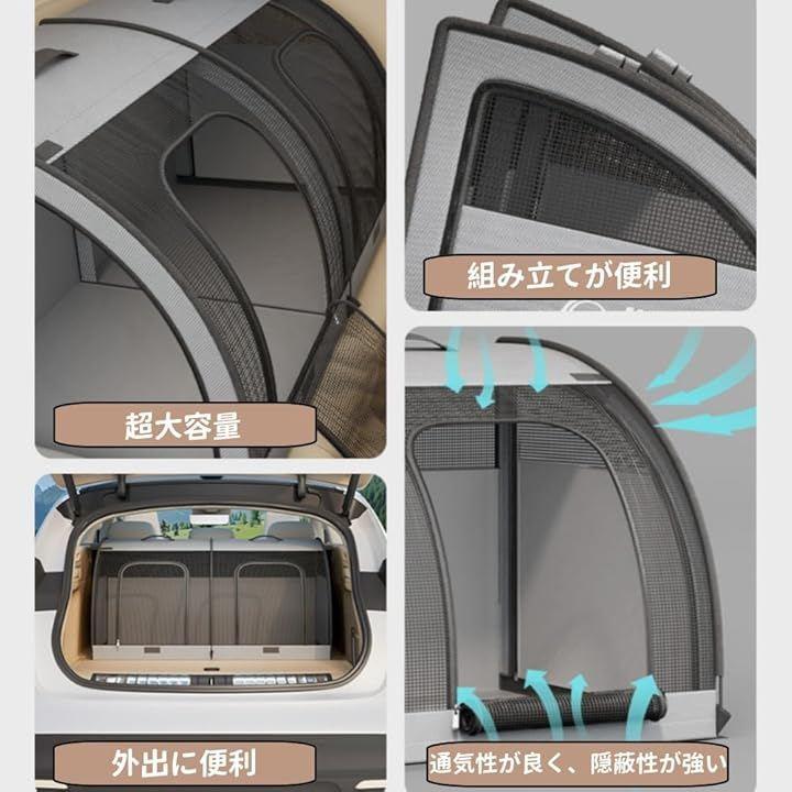 さらに、ジッパー付きのフロントドアとリアドアが2つあり、ドアは通気性を確保する高強度メッシュ製です。