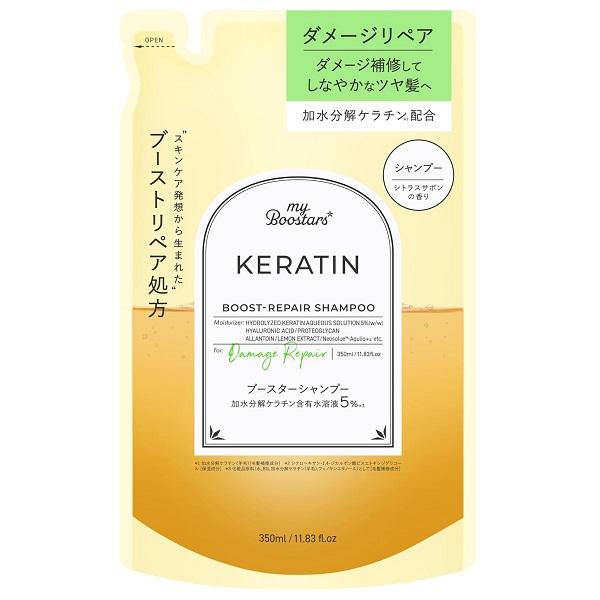 加水分解ケラチン配合、スキンケア発想から生まれたブースターシャンプー。ダメージを補修し、しなやかなツヤ髪へ導きます。