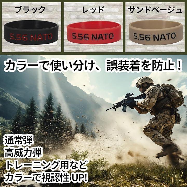 「カートリッジ表記入り」バンドには「5.56 NATO」や「7.62x35mm」のプリントなど、サバゲーのリアルさを求めるだけでなく見た目のカスタマイズ要素としても楽しめます。