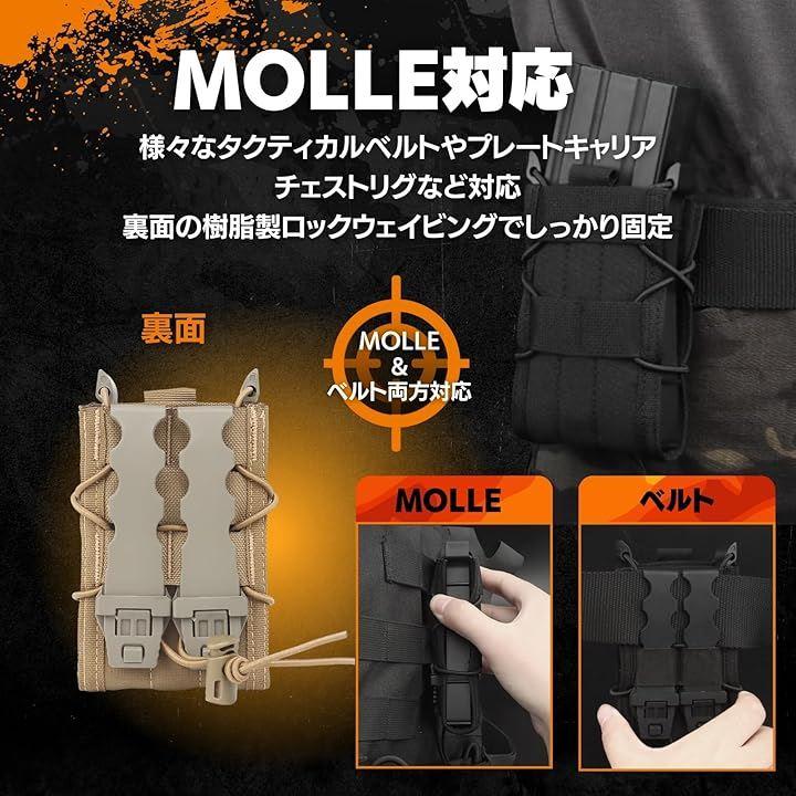 「MOLLEとベルトに対応」MOLLE(モール)付きのチェストリグやプレキャリでも普通のベルトにも取付け可能です