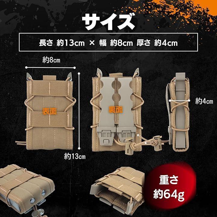 「多用途」マガジンの他に、トランシーバーやライトなどタクティカルツールやスマホなども収納可能です。