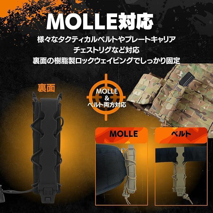 「MOLLEとベルトに対応」MOLLE(モール)付きのチェストリグやプレキャリでも普通のベルトにも取付け可能です