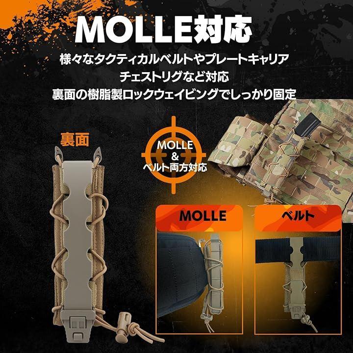 「MOLLEとベルトに対応」MOLLE(モール)付きのチェストリグやプレキャリでも普通のベルトにも取付け可能です