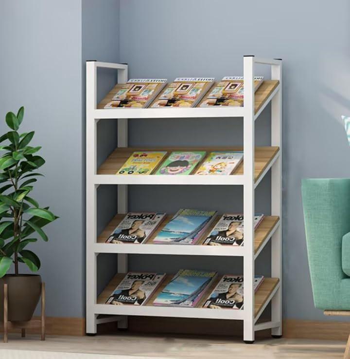 「シンプルでおしゃれなデザイン」このマガジンラックのデザインはシンプルであり、鉄製のフレームと木製の棚板が室内の雰囲気と調和していて、オフィスではカタログの展示などディスプレイラックとして最適です。