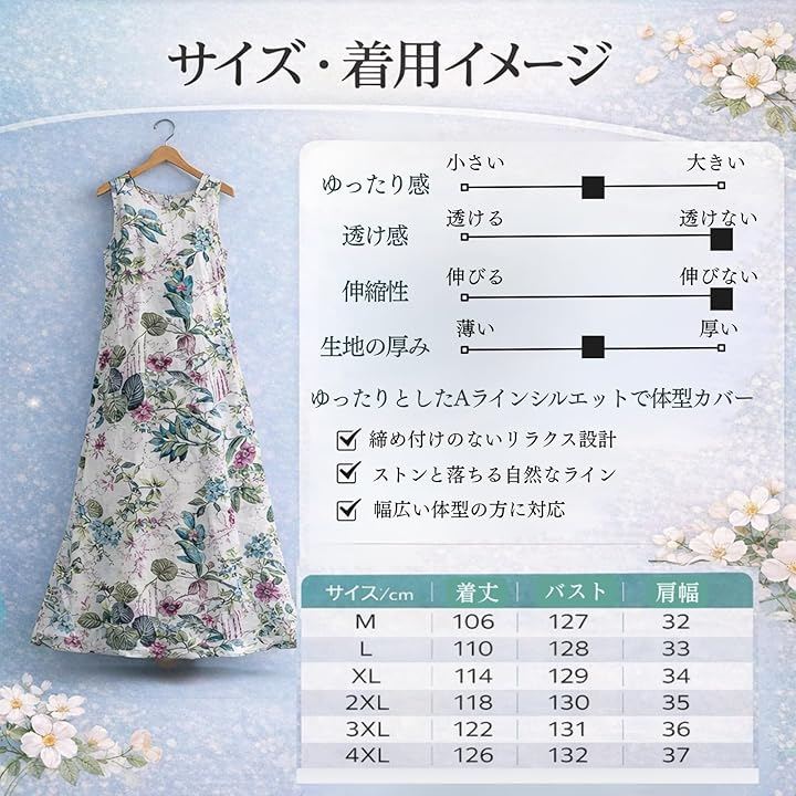 ゆるふわとした軽やかな着心地が魅力のロングドレス。