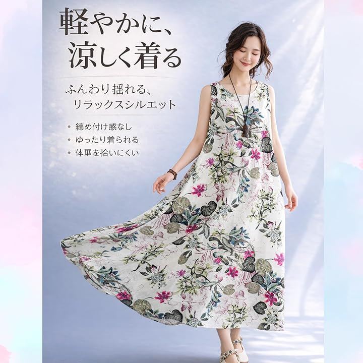 ゆるふわとした軽やかな着心地が魅力のロングドレス。