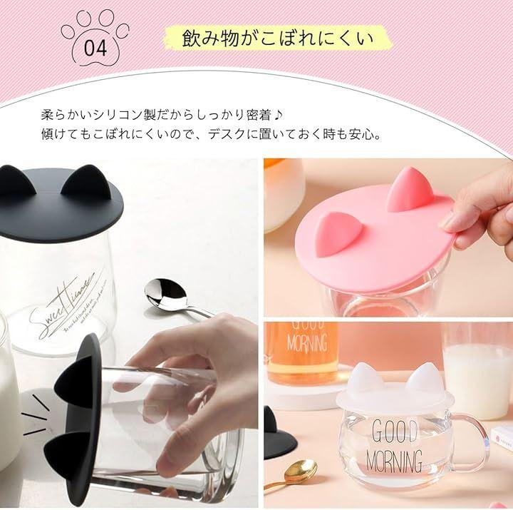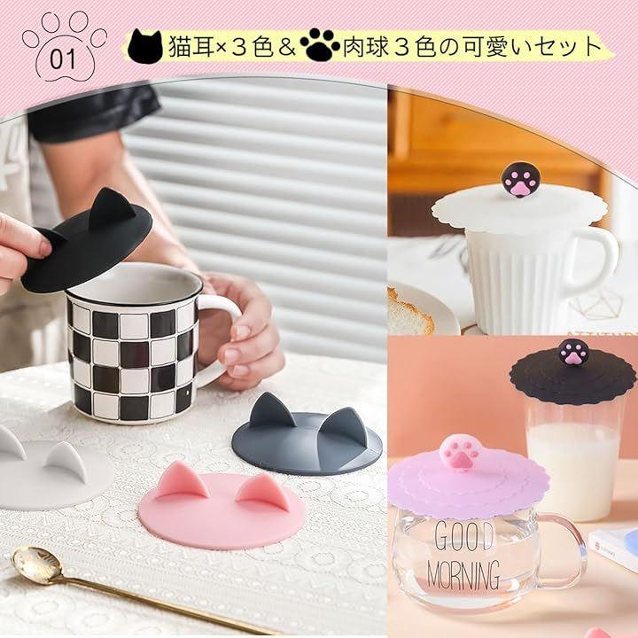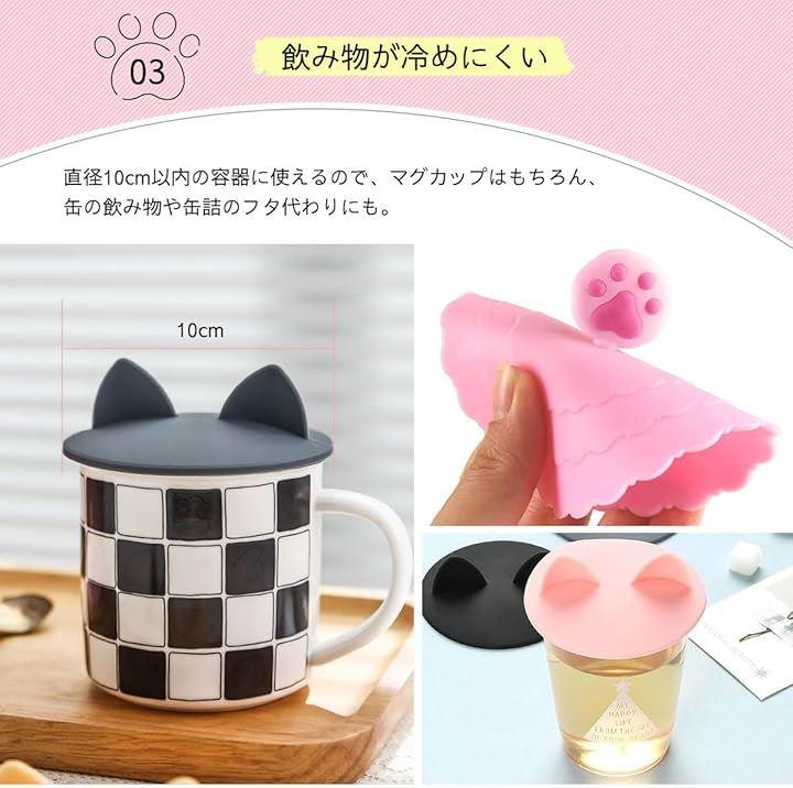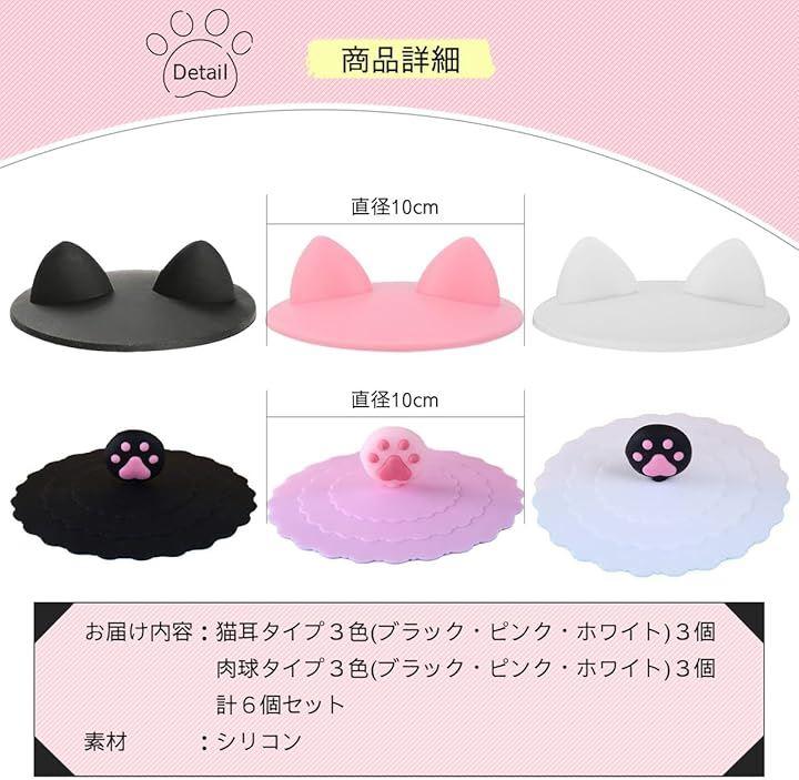 マグカップカバー:肉球3個、ねこみみ3個(計・6個セット)直径10cm、使用可能温度:-40~230度の範囲内、ブラック、ピンク、ホワイト*モニターの環境により、色の見え方に若干差が生じる場合がございます。