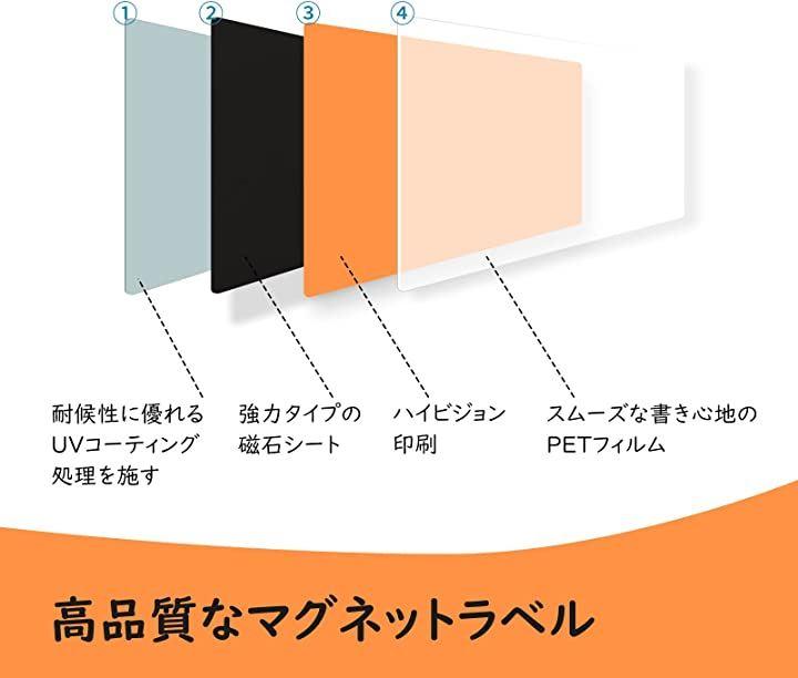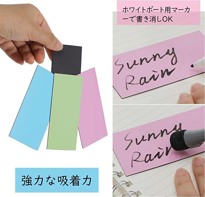 冷蔵庫の在庫管理、教室の教育文具として、事務所や倉庫の表示、ロッカーやスチール棚の表示、ディスプレイや商品案内などに最適、スケジュール管理や名札代わりにも便利です。