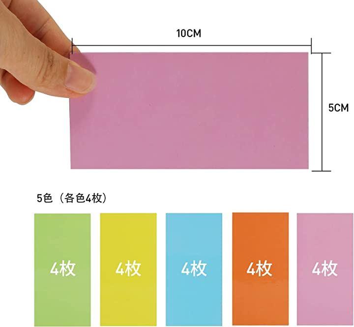 商品のセット内容: カラフルマグネットシート20枚(5色x4枚) 。