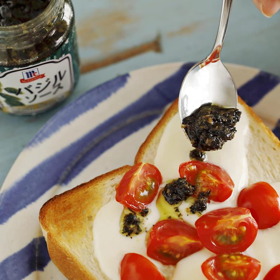 摘みたてのバジルの新鮮な風味をそのままに、香り高いソースに仕上げました。パルメザンチーズや松の実のコクを生かしたジェノベーゼタイプのソースです。オリーブ油もはいっているので、本品だけを茹でたてスパゲッティにまぜるだけ。