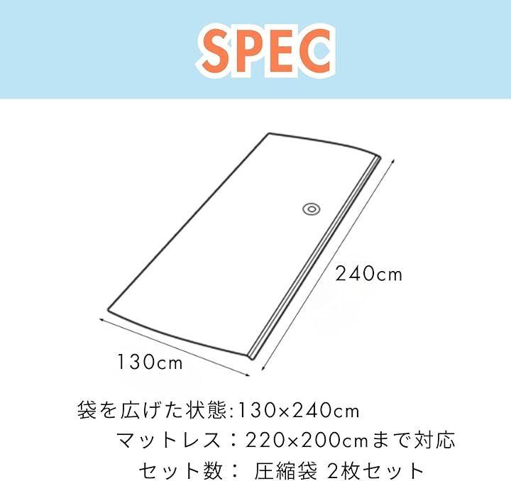 サイズ130x240cmの大容量マットレス真空圧縮袋2枚セット。