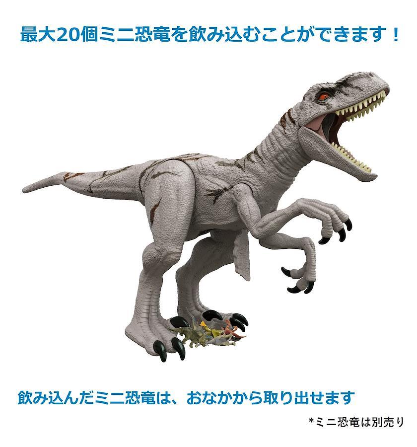 【内容】全長約93cmの大迫力のアトロキラプトル! 口を開けて、別売りのミニフィギュアをたくさん入れて、おなかを 開けると出てくるよ! あごや首、両手両足としっぽが動かせませす。