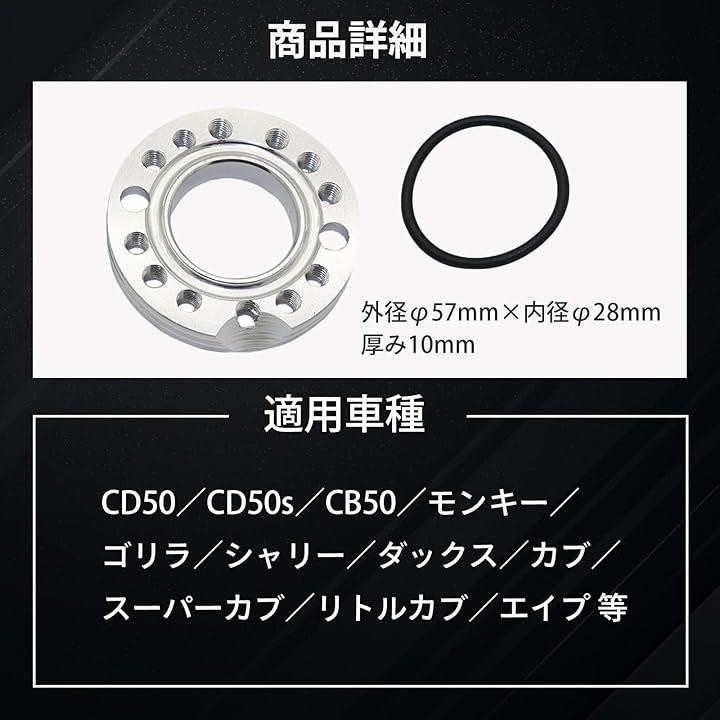 「適用車種」CD50、CD50s、CB50、モンキー、ゴリラ、シャリー、ダックス、カブ、スーパーカブ、リトルカブ、エイプ 等 「サイズ」外径φ57mmx内径φ28mm 厚み10mm 取り付けボルトピッチ45mm