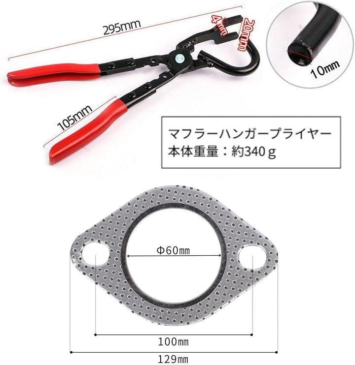 マフラーハンガープライヤー サイズ:295mmx150mmx20mm 重量:340g マフラーガスケット φ60