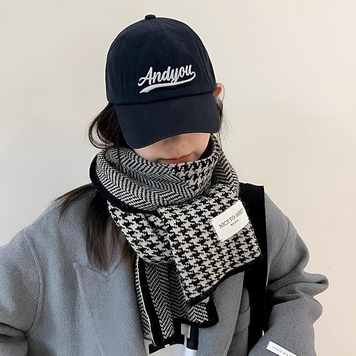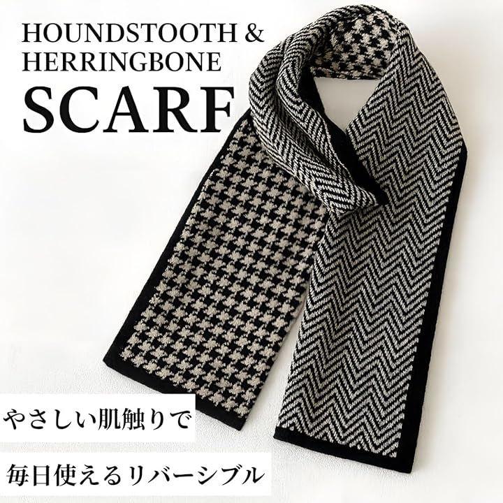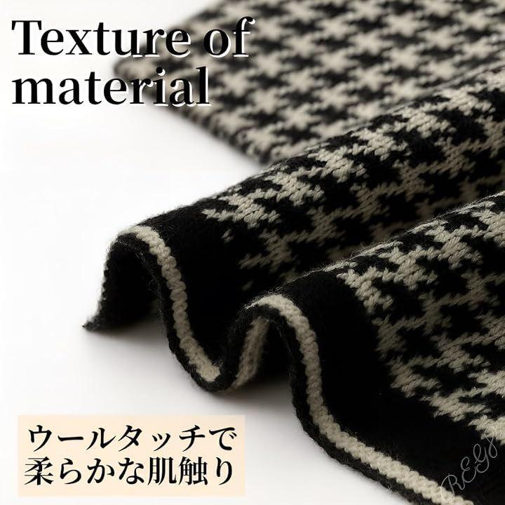 柔らかいポリエステル素材で肌触りが良く、リブ編みと千鳥格子デザインがスタイリッシュで、ブラックやベージュの2カラー展開。