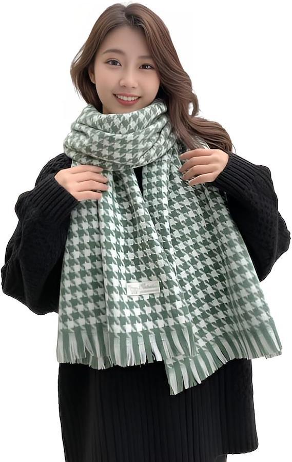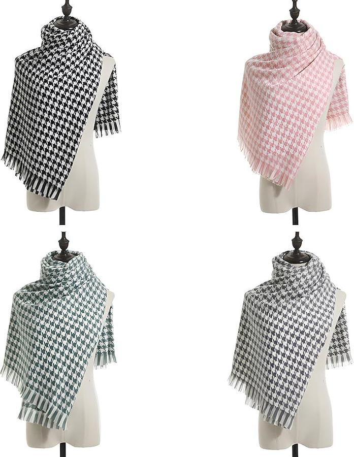 Women's Large Houndstooth Pattern Scarf, Stylish, Warm, Cold Weather Shawl, Soft Cover-Up