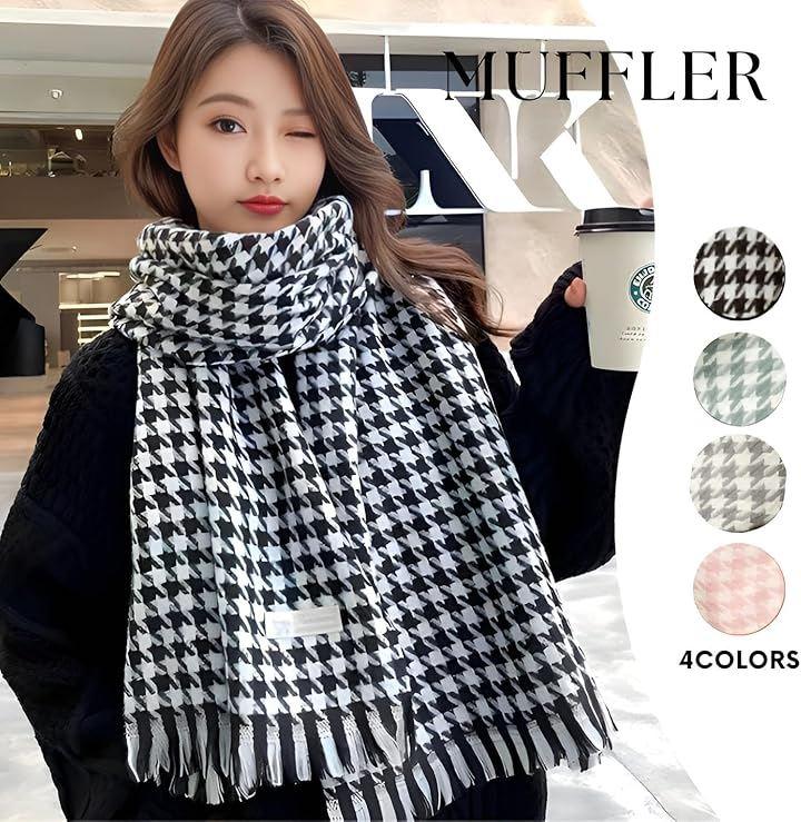 千鳥柄柄のマフラーは、人気のあるデザインで、小鳥の独特な模様を指し、シンプルでありながらもエレガントな印象になります。