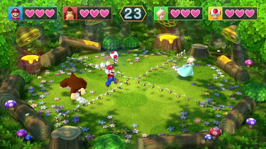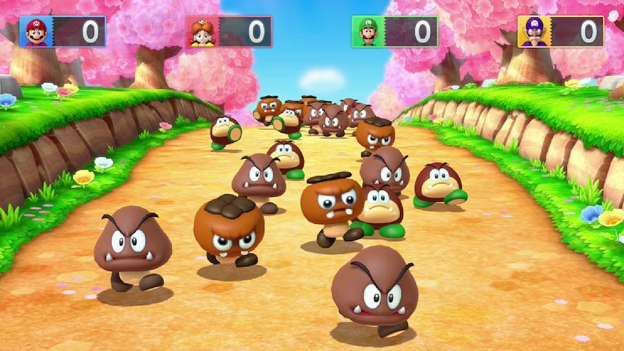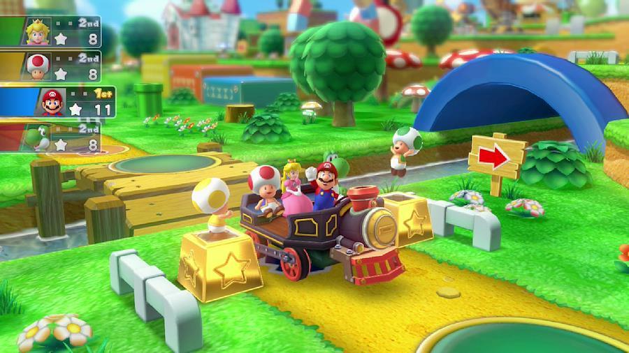 最大5人で遊べる “クッパパーティ"クッパとマリオチームに分かれて遊ぶ1対4の新モード。クッパはひたすらマリオたちを追いかけて攻撃。対するマリオチームはその攻撃を振り切りながら、協力してゴールを目指します。