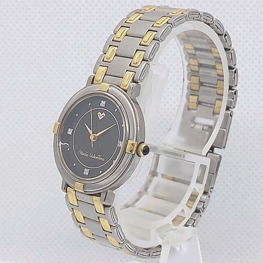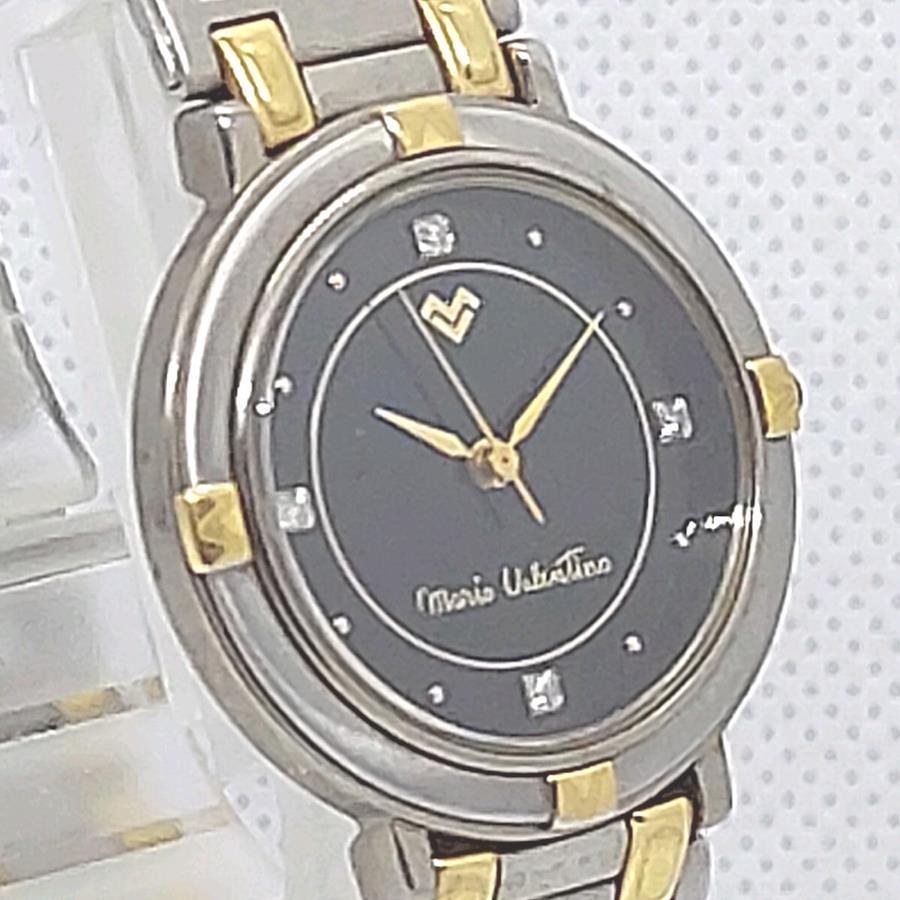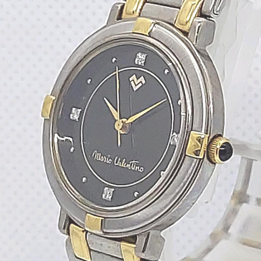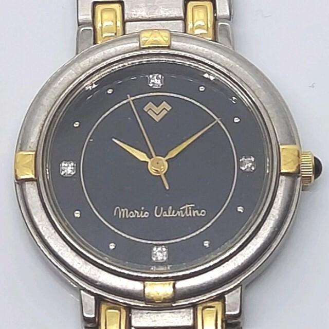 マリオ バレンチノ レディース腕時計 MV-800 QZ 2P石付 黒文字盤 【L91】