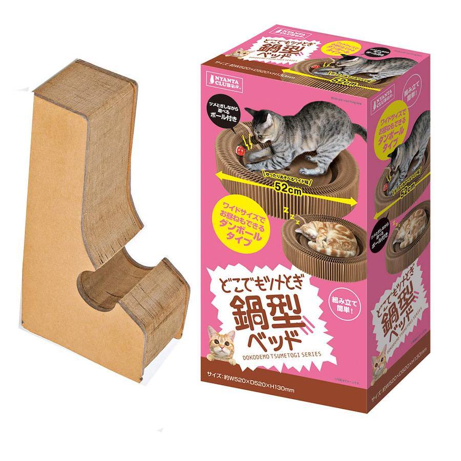 ツメとぎしながら遊べるボール付き。ワイドサイズでお昼寝もできるダンボール製爪とぎベットです。