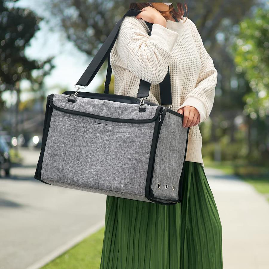 ソフトタイプで持ちやすくお出かけにピッタリなキャリーバッグとドライブ時のペット専用シートとしても快適なボックスタイプと便利な2Wayタイプのおでかけキャリーです。 ・安心の目隠し天面カバー付き ・たたんでコンパクト収納 ・ペットシーツを留めるゴムベルト付き底板 ・内生地は可愛いプリント柄 ・商品使用時サイズ:幅400×奥行300×高さ300mm ・対象動物:8kg以下の小型~中型犬