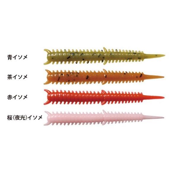 パワーミニイソメ 小粒でもしっかり誘える実力派 「パワーイソメソフト」と同じ素材を使用したミニタイプ。頭部は太くボリュームがあり、尻尾は細めで水を受けるとよく動く形状。小粒でも、魚の食い気を強く刺激します。 そのまま1本で使うのはもちろん、小型の魚を狙うときは、くびれ部分から切ると吸い込みやすさがアップ。入門者から上級者まで使いやすいアイテムです。※車中や炎天下など、高温になる場所で保管すると変形する恐れがあります。50℃以下の場所で保存してください。 フルーティなピーチの香り付き。 保存がラクな常温タイプ。1袋20本入り。