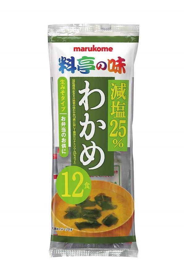 【内容量】12食×12袋【減塩25%】インスタントみそ汁において減塩タイプの市場は伸びています。値ごろ感から伸びているポーションタイプでも人気具材わかめで低塩タイプを提案致します。【料亭の味】風味豊かな赤系みそをベースに、かつおだし、昆布だしを程よくブレンドしました。1982年、業界に先駆けて商品化された料亭の味は、だし入り味噌のロングセラー。【豊富なラインナップ】減塩や無添加、即席や生みそ汁、カップみそ汁、フリーズドライみそ汁など、ライフスタイルに合わせたさまざまなラインアップを用意しています。【ひと工夫】長ねぎやとうふを刻んで鍋でひと煮立ちさせると手作り感溢れるみそ汁が出来上がります。【重要】メーカーによる商品リニューアルに伴いパッケージ(内容量も含む)変更が行われた場合、新パッケージでお届け致します事ご了承願います。