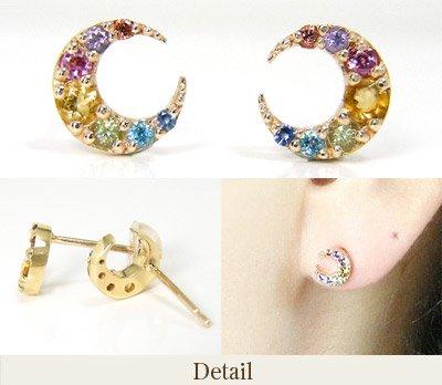[材質]K10イエローゴールド[石](全て天然石)シトリン2.0mm,ピンクトルマリン/ペリドット1.4mm,アメジスト/ブルートパーズ1.2mm,ガーネット/サファイア1.0mm[縦・横]約6.2mm約6.0mm[ポスト]0.65φ10mm[キャッチ]K10YG製シリコン付ダブルロック