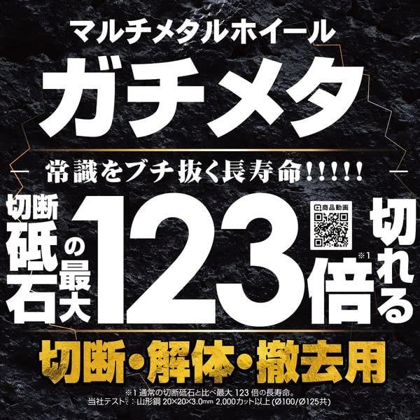 モトユキ GM-105 マルチメタルホイールガチメタ常識が覆す長寿命!!!切断砥石の最大123※?倍切れる!!!マルチメタルホイール 切断・解体・撤去用!■長寿命切断砥石に比べ最大123倍の寿命。真空金属溶着製法により、ダイヤモンド砥粒の脱落が抑制され長寿命。■径が小さくならない長寿命で取り換え作業激減。切込深さを一定に保てる※アングル20×20×3.0mmを15カット切断した時の比較■取り換え作業激減煩わしい作業が最大123回激減■火花・粉じんが少ない。=仕様=品番GM-105外径105mmダイヤ層厚1.4mmダイヤ層幅2.5mm穴径20mmリング15mm最高回転速度14500min??適合機種・ディスクグラインダー・カッター・防じんカッ