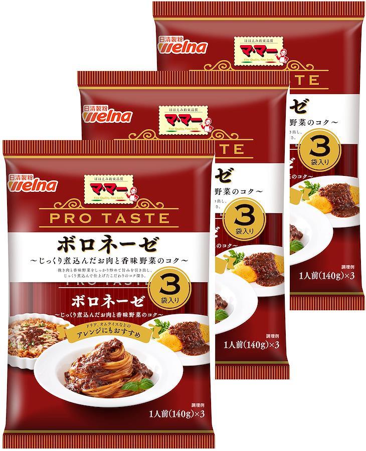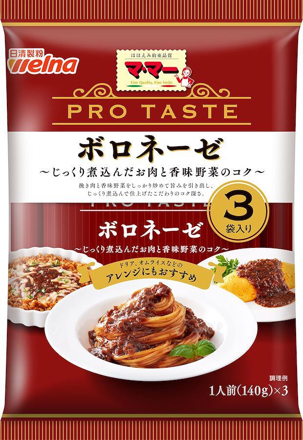 「マ・マー PRO TASTE ボロネーゼ」は、挽き肉と香味野菜をしっかり旨みを引き出し、じっくり煮込んで仕上げたこだわりのコク深さが感じられるボロネーゼソースです。