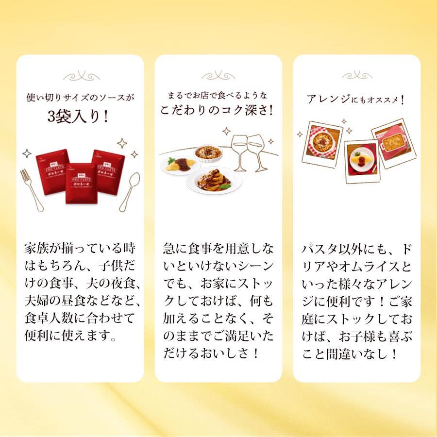 食事人数に応じて便利にお使いいただけるように、1人前のソース(140g)が入った商品設計です。【重要】メーカーによる商品リニューアルに伴いパッケージ(内容量も含む)変更が行われた場合、新パッケージでお届け致します事ご了承願います。