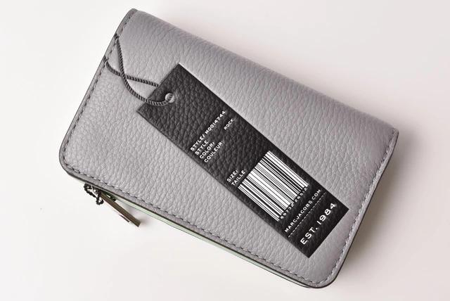 牛革を使用したコンパクトウォレット。表にはMJロゴが入った”タグ”の表プリント、裏には商品の品番などが記載された”タグ”の裏をデザインしたプリントが施されたMARCらしい遊び心が溢れるデザイン。
