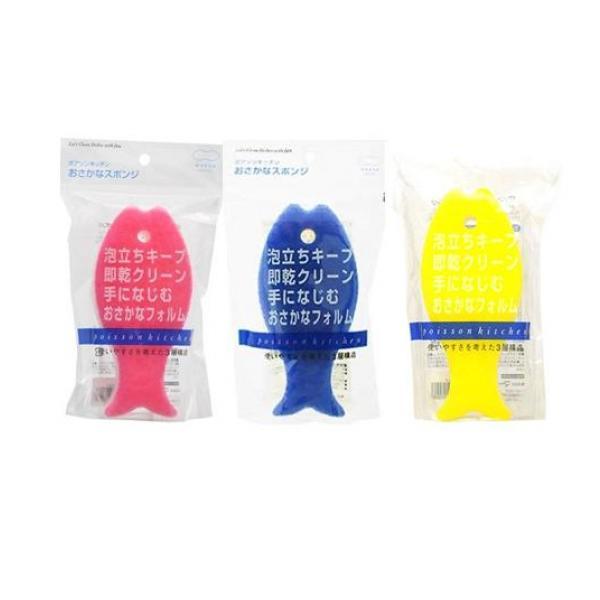 製品の特徴●3層構造で泡立ち・泡持ちに優れているキッチンスポンジです。・ナイロン不織布層:鍋・フライパンの磨き上げ、ガンコ汚れに・ウレタン層:洗剤をしっかりキープ・脱膜ウレタン層:少量の洗剤でもたっぷり泡立ち、水切れすっきり●おさかなの形が手に馴染みます。●しっぽの部分をくるっと回せば、コップの底にしっかり届きます。●サイズ:約142×66×35mm●耐熱温度:70℃