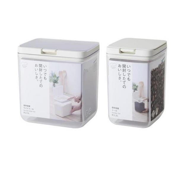 製品の特徴●marna(マーナ)保存容器 ワイドトール K761●いつでも開封したてのおいしさ。●パッキンでしっかり閉まって湿気を防ぎ、ワンタッチで開く保存容器。●『ワイドトール』サイズは、容量およそ2L。「小麦粉(袋ごと)なら約1kg」「小麦粉(粉のみ)なら約1.2kg」「シリアルなら約600g」が入ります。また口が広いので、容器に入ったまま中身を取り出せます。●2つのパッキンで、湿気を防ぎます。●ワンタッチで開けられるので、フタの置き場に困りません。●パッキンと本体を分解して洗えるので衛生的です。●フタの色は中身が見やすい「クリア」と、シンプルな「ホワイト」の2タイプ。引き出しの中でも中身が分かりやすくきれいに収納できます。●耐熱温度:本体・フタ・フタ枠/60℃、パッキン/200℃●耐冷温度:-20℃●サイズ:約152×164×117mm●容量:約2.0L