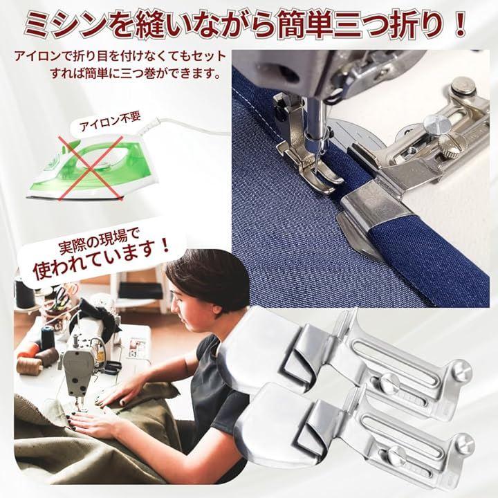 このアタッチメントがあると裁縫、裾縫い、巻縫い、端縫い、襟処理など他にも様々な裁縫ができます。