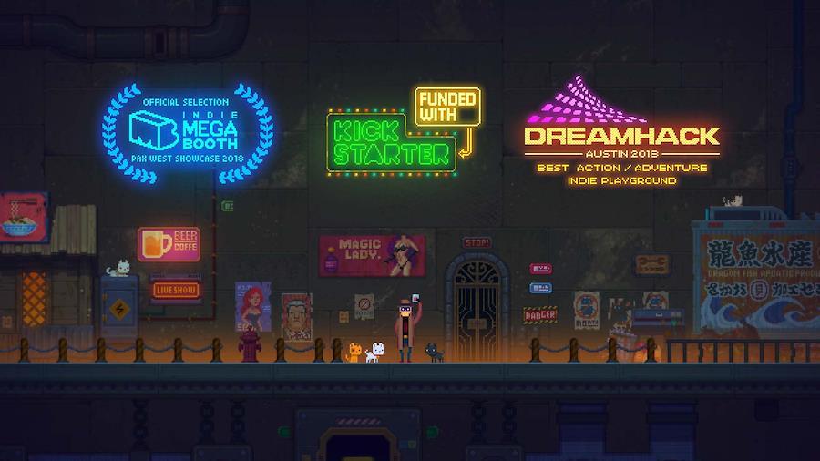 驚くほど精細なレトロスタイルのドット絵と、モダンな雰囲気の照明や豪華な視覚効果が、このユニークなサイバーパンクの世界に生命を吹き込んでいます。また、音楽とサウンドデザインは、サスペンスとミステリーの層をより深いものにしています。