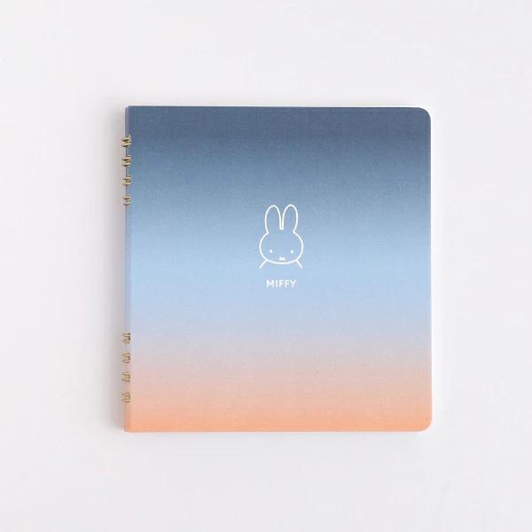 グラデーションとミッフィーのイラストをシンプルに組み合わせたシリーズでほんのり透け感がある、マットな質感の、温かみのある手触りな素材にもこだわった大人の方に是非お使いいただきたいシリーズです♪こちらのスクエアタイプのリングノートは表紙に風合いのある素材を使い、手触りの良さにもこだわったリングノートです☆