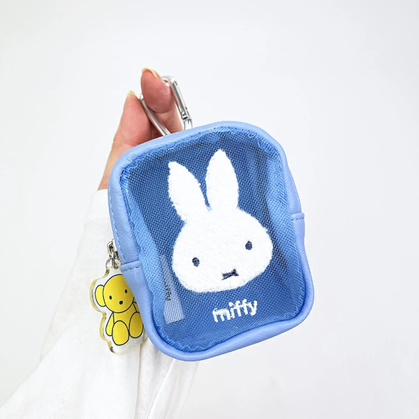 もこもこのミッフィーのカナビラ付きミニポーチです。お薬や無くしがちなイヤホンなどの小物を収納するのに便利アイテム◎チャックにはミッフィーが大好きなくまちゃん付き♪お気に入りのカバンやリュックに付けてお出かけしませんか♪